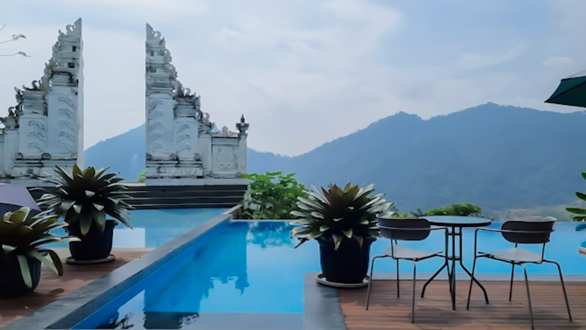 Kalau kamu pengen merasakan suasana liburan ala Ubud tanpa harus jauh-jauh ke Bali, Mandapa Kirana Resort Sentul bisa jadi pilihan yang pas. Mengusung konsep resort dan restoran dengan arsitektur khas Bali, tempat ini menghadirkan gapura megah khas Pulau Dewata, kolam air jernih, dan infinity pool yang langsung menghadap ke perbukitan hijau dengan latar belakang Gunung Pancar yang megah.