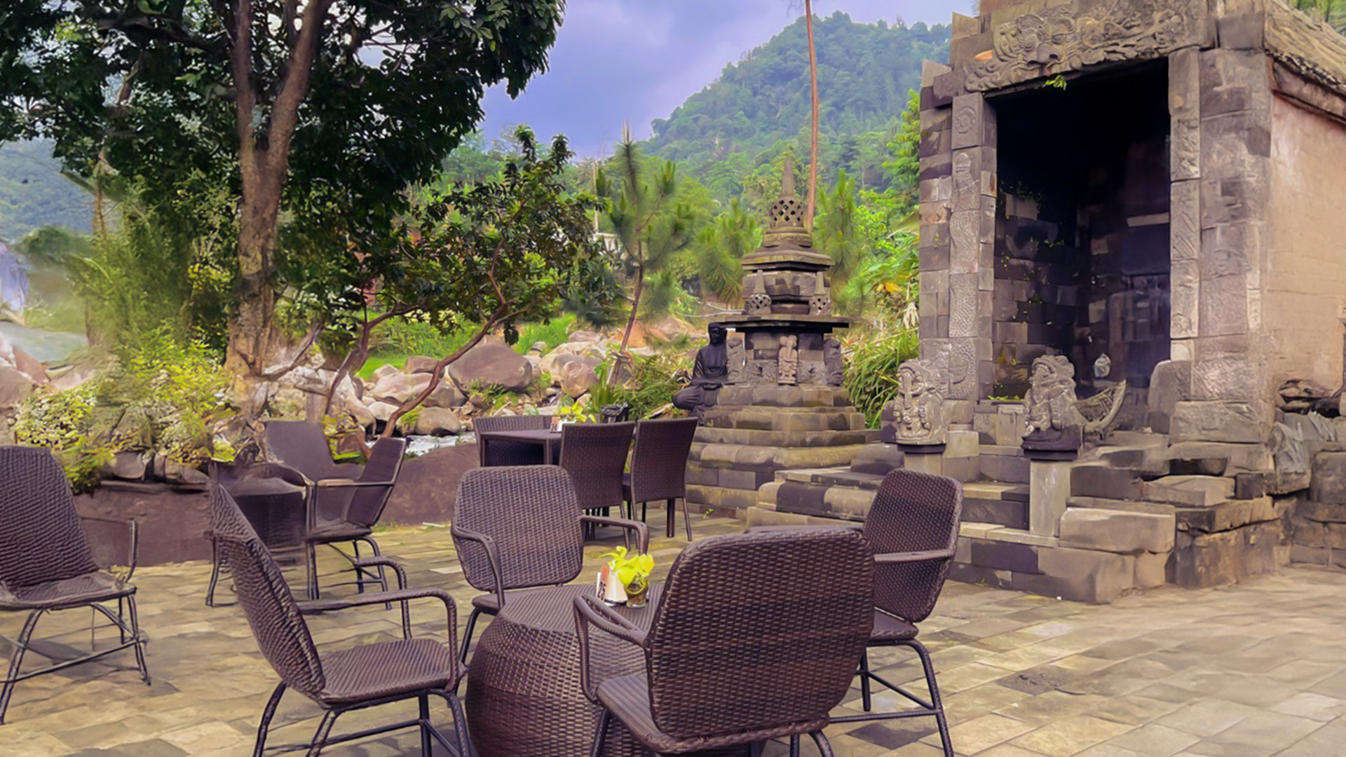Di tengah rimbunnya hutan pinus dan aliran sungai yang jernih, Pendopo Ciherang menawarkan suasana pedesaan yang adem dan menenangkan. Dengan bangunan joglo khas Jawa, jembatan kayu yang menyatu dengan alam, serta udara segar Sentul yang bikin betah, tempat ini cocok buat yang butuh recharge dari hiruk-pikuk kota.